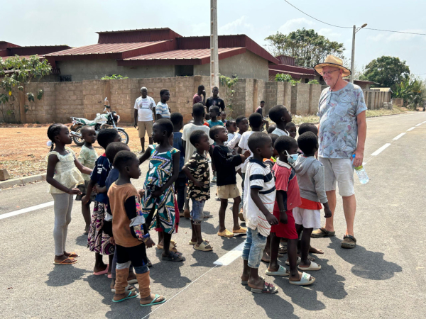 Grenzübergang von der Elfenbeinküste nach Ghana. Am letzten Abend in der Elfenbeinküste konnten wir noch einen speziellen Tanz direkt an unserem Camp organisieren. Wir standen in einem kleinen Dorf direkt gegenüber von einer Kirche und bei einer Schule und somit war natürlich die Neugierde der vielen Kinder sehr groß.