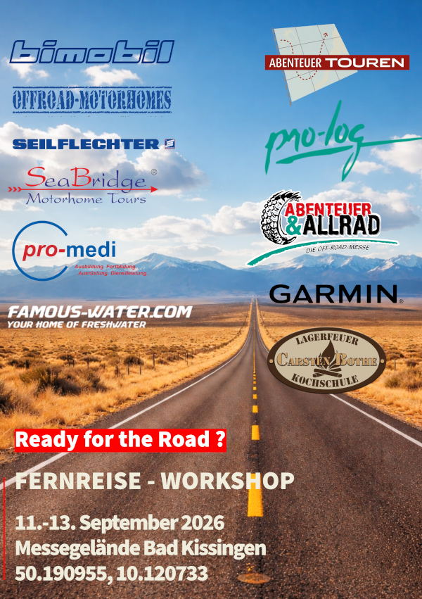 In enger Zusammenarbeit mit pro-log und Abenteuer & Allrad wird ein Workshopwochenende ins Leben gerufen, welches allen Teilnehmern die Chance gibt, Mensch und Fahrzeug umfassend auf eine Fernreise vorzubereiten.
